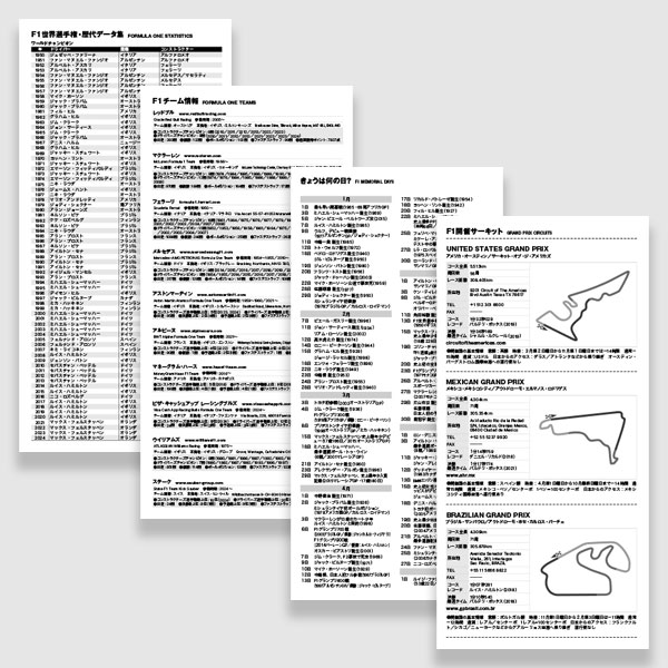 おまけのページにはF1関連が満載。付属の国旗シールをスケジュールに貼ればレースの見逃しを防げます。