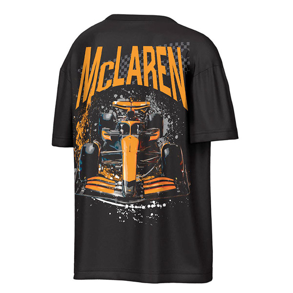 フロントにマクラーレン F1 チームロゴ、バックにはチームを象徴するF1マシンのグラフィックを大胆にデザインしたインパクト抜群の1枚。 レーストラックのスピード感とエネルギーを感じさせるデザインは、F1ファン必見です。 トレンドのオーバーサイズシルエットと、柔らかくしっかりとしたコットン素材で快適な着心地を実現。 レース観戦や日常のストリートスタイルにもぴったりのアイテムです。