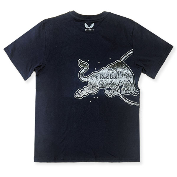 レッドブルのロゴに使用されている象徴的な“レッドブル”を、バックスタイルに大胆にデザインしたTシャツです。