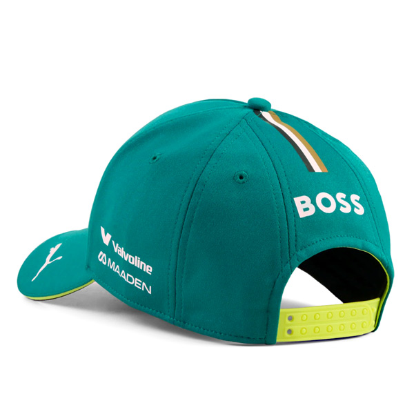 チームを象徴するレーシンググリーンをベースに、前面にチームロゴ、側面と背面にパートナーロゴ、ツバにはPUMAロゴがデザインされています。