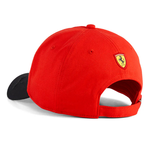 コントラストカラーのバイザーにPUMAキャットロゴを配し、スポーティーなデザインに仕上げられています。背面にはフェラーリのスクーデットロゴ(跳ね馬)を配置し、さりげなくチームの存在感を演出します。