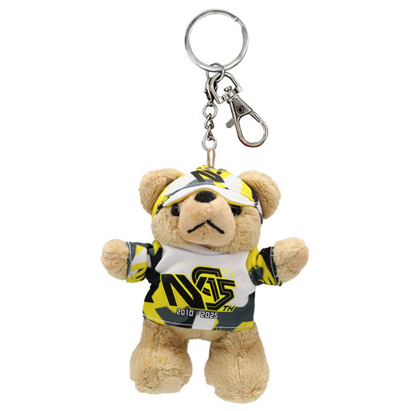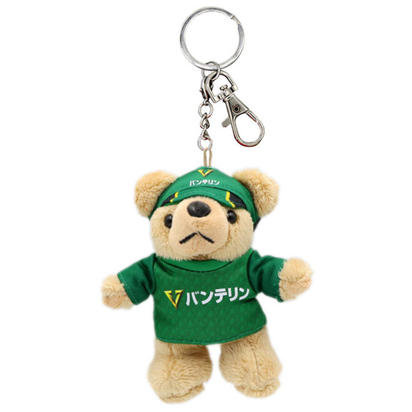 チームグッズを身に着けぬいぐるみの肌触りをそのまま残したかわいいベアーキーリング